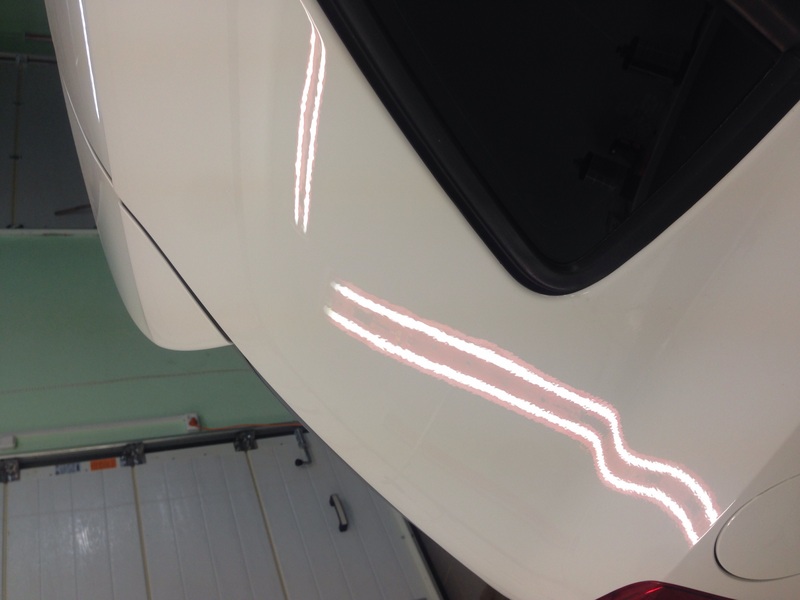 Используя технологию беспокрасочного удаления вмятин, мы исправили неприятную вмятину...
