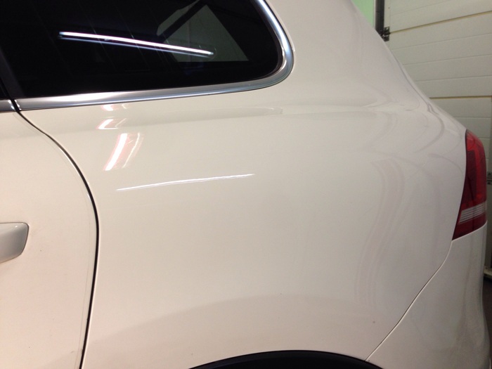Используя технологию беспокрасочного удаления вмятин, мы исправили неприятную вмятину...